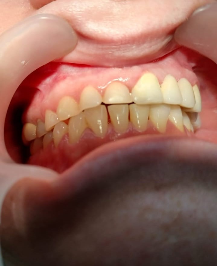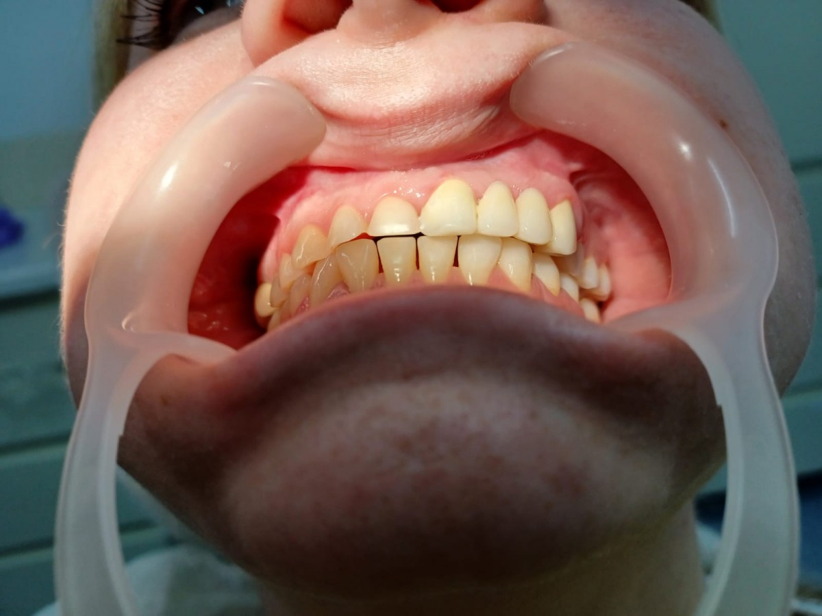 Pacienta s-a prezentat la cabinet pentru o nouă lucrare de reabilitare, nefiind mulțumită de cea prezentă.